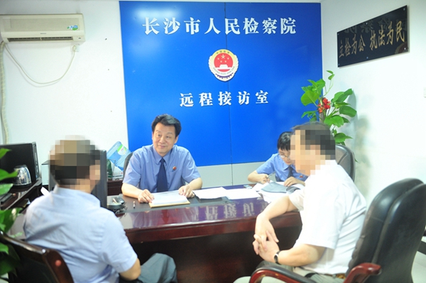 陈绍纯检察长首先阅看了第一位来访群众提交的举报材料。根据举报材料反映的问题,陈绍纯检察长当即召集反贪污贿赂局、反渎职侵权局、侦查监督二处等业务部门主要负责人,当面、逐个详细了解有关情况。随后,陈绍纯检察长在检察长接待室接待了举报人——湖南某企业负责同志等一行四人。陈绍纯检察长与举报人一一亲切握手,首先向举报人介绍了本次举报宣传周的主要宗旨、内容、形式;今天,市检察院开展的检察长接待日活动的有关安排;并欢迎群众来长沙市检察院举报或反映、咨询有关问题。陈绍纯检察长说“企业十分重要,企业是经济社会发展的重要基础单元,检察机关应当依法为企业服好务,包括及时接待、受理和查办群众反映的各类举报线索,依法严肃查办发生在国有企业中的职务犯罪,依法打击各类危害企业生产、经营和发展的刑事犯罪,真正为企业营造一个良好的生产、经营环境。这既是我们服务大局的政治责任,又是我们为民司法的重要任务。”举报人对陈绍纯检察长亲自接待他们的举报表示由衷感谢,随后详细陈述了举报事项。陈绍纯检察长仔细听后,对被举报人的主体资格、主观故意、客观方面、社会危害等进行详细分析和解答,并提出有关办理意见。整整一上午亲切、平和、透彻的释法说理,让举报人对被举报人发生的问题有了比较客观、准确的了解,对检察机关办理这起举报线索的程序有了具体的了解。举报人十分满意地说:“感谢陈检给我们上了一堂很实在、很专业、很好的法律课,作为从事企业的负责人,我们受益匪浅。陈检从法律、检察职权等层面讲得很到位,我们完全赞成陈检提出的有关意见。”