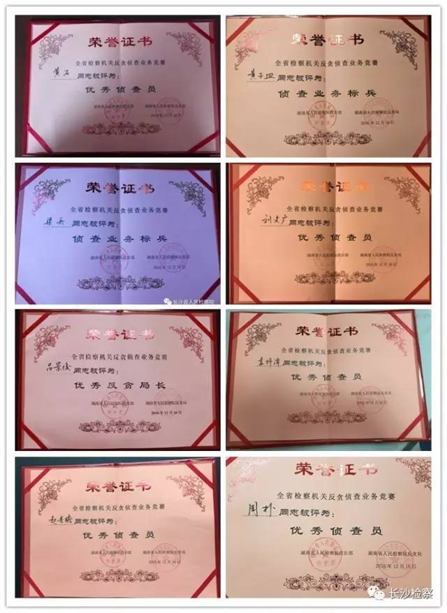 12月16日,由省检察院反贪局举办的全省检察机关反贪部门优秀反贪局长、侦查业务标兵、优秀侦查员业务竞赛活动获奖情况揭晓。长沙市反贪队伍共8名侦查人员在比赛中获奖。