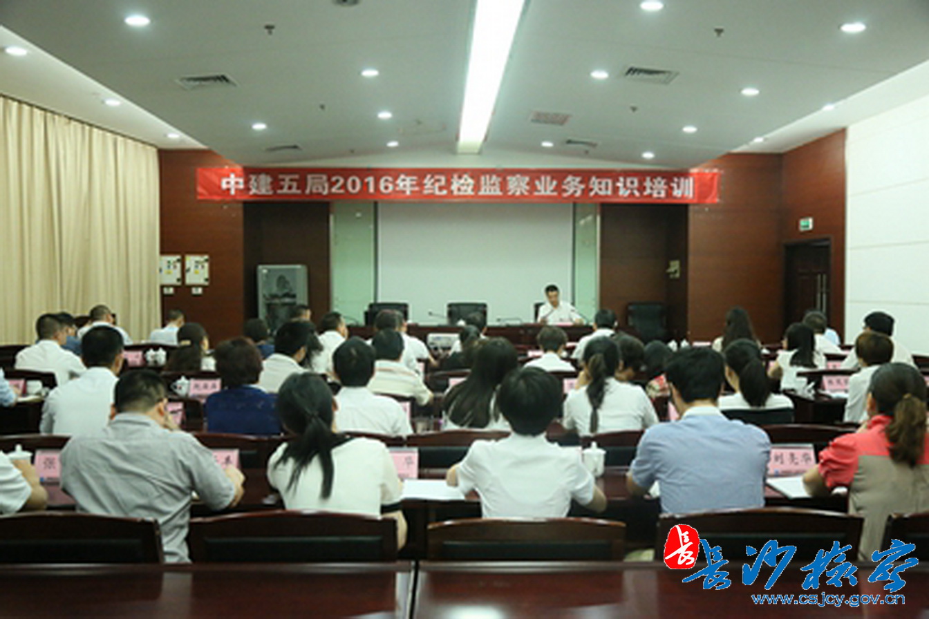 图:2016年6月28日,受中建五局党委邀请,市检察院党组成员、副检察长闵文为该局17个单位58名专兼职纪检监察人员开展了一次“国有企业职务犯罪与预防”的警示教育讲座。