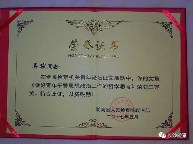 市检察院青工委主任肖鑫波的文章《质效引领 创新驱动 全面推进并努力实现团青工作新发展》被评为一等奖;长沙县院办公室副主任周程的文章《坚守与服从也是一种回应》、浏阳市院青年干警陈有道的文章《浅谈助理检察员到检察官助理的转变》被评为二等奖;浏阳市院控申科科长吴暄的文章《做好青年干警思想政治工作的哲学思考》被评为三等奖。同时,浏阳市检察院被评为优秀组织奖。