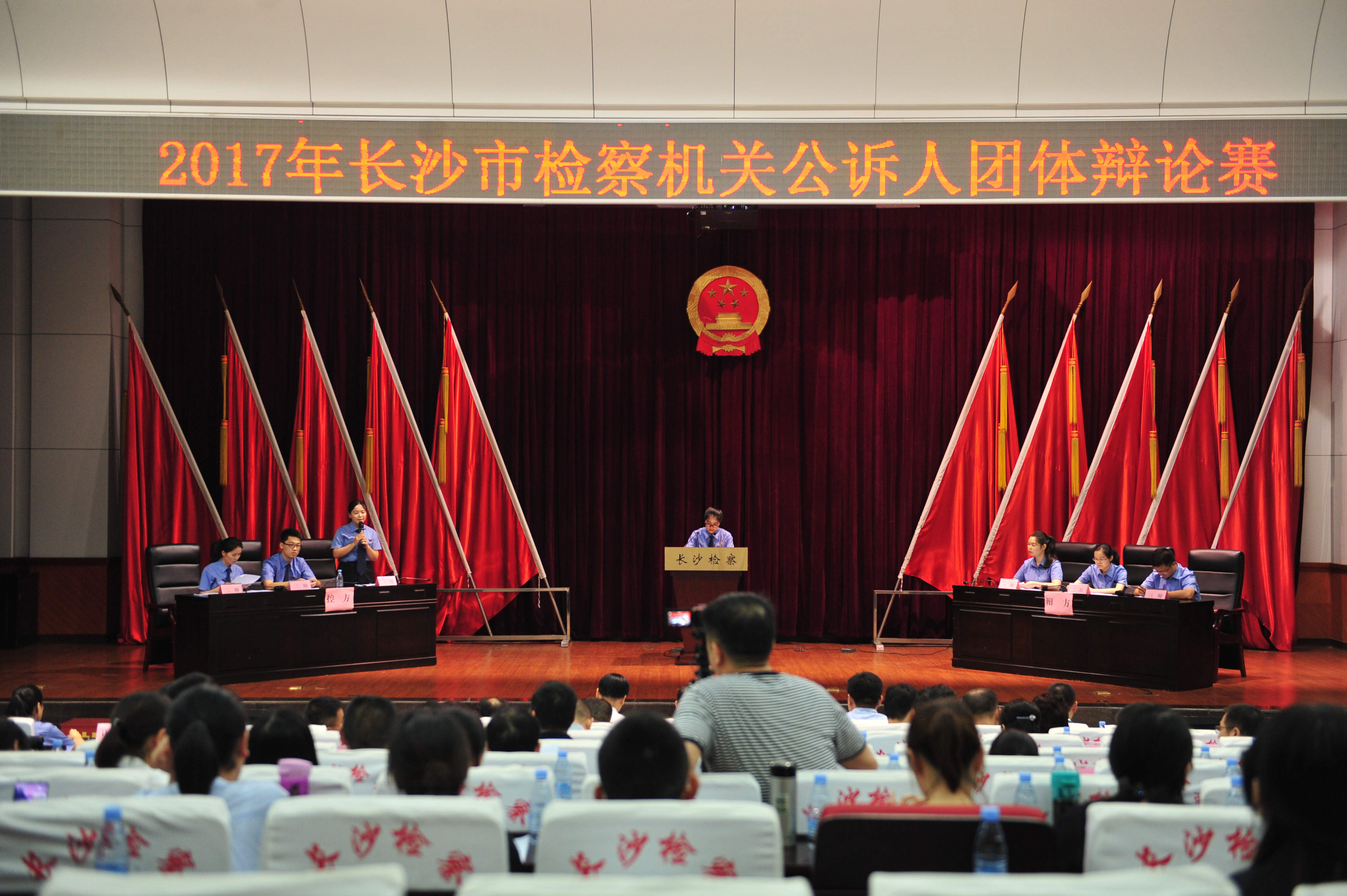 为积极适应以审判为中心的诉讼制度改革,推动岗位练兵和业务竞赛活动深入开展,6月23日下午,长沙市检察机关举行全市公诉人团体论辩赛。长沙市检察院党组书记、检察长王勋爵等领导来到市检察院比赛现场,与全市检察干警一起观摩了整个赛程。