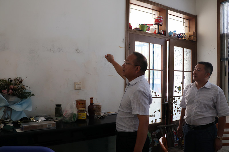 王勋爵首先来到宁乡县检察院退休老干部宿舍区——玉潭镇梅家田社区,先后实地走访查看了退休老检察长孙赐林、退休副检察长段骏飞以及该院控申科干警宋建南家中的受灾情况。