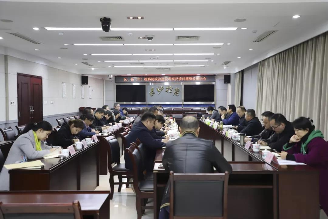 会议传达学习了省委常委、长沙市委书记胡衡华关于检察机关政治建设的重要指示和市委对区县(市)检察院政治建设考察情况反馈通报精神。各区县(市)院检察长针对本院存在的突出问题汇报整改措施并作表态发言。