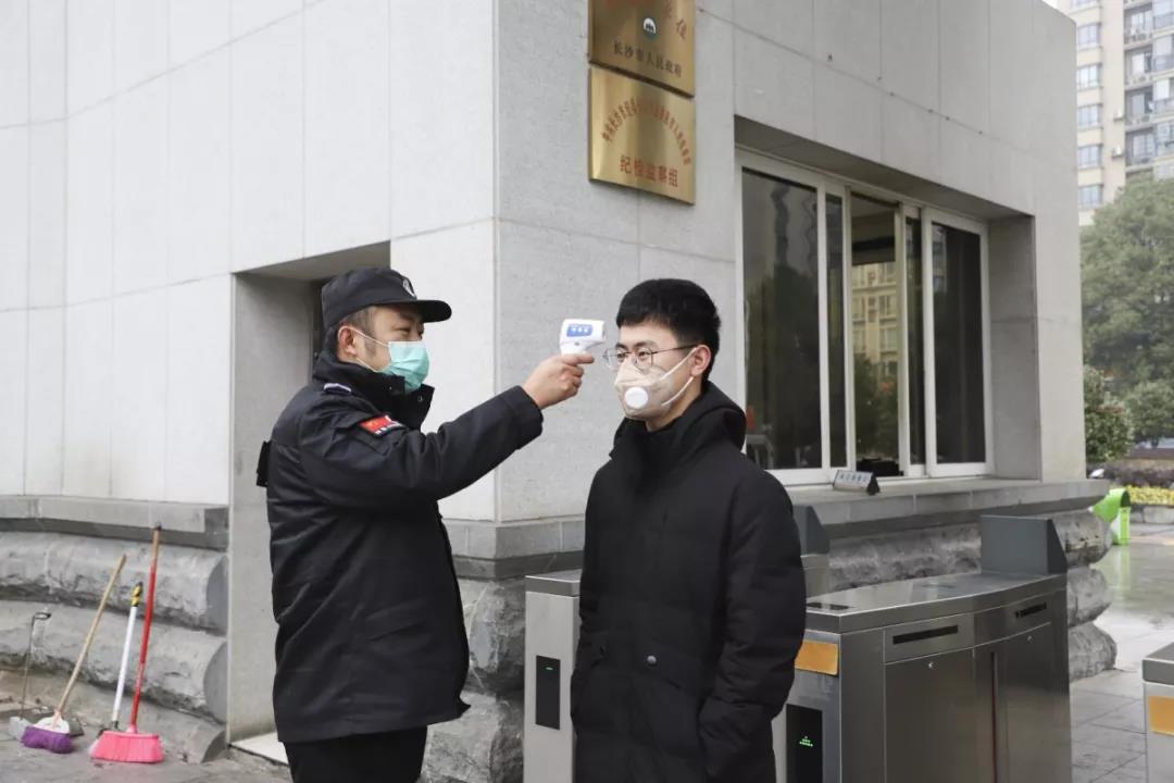 车辆人员进门岗接受测温,