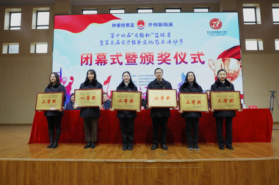 机关第二届“读书风气最盛检察院”、“热爱读书检察官”、第三届书法绘画诗词摄影、篮球、气排球、乒乓球、跳绳和拔河等八大项文化艺术体育类比赛的获奖情况。同时对上述获奖代表队和个人代表,进行了现场颁奖。
