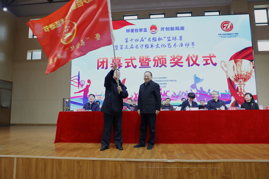 文化艺术活动节的旗帜交到下届承办方天心区检察院副检察长刘立手中,并宣布本届文化艺术活动节顺利闭幕。