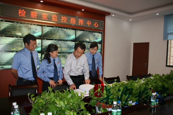 2014年9月15日,市检察院党组书记、检察长陈绍纯先后深入星城地区检察院驻长沙市看守所、省女子监狱检察室调研和指导驻所检察工作。市检察院党组成员、政治部主任盛磊,星城地区检察院副检察长姜国强、李梅,市检察院办公室主任方国强等相关人员参加了此次调研。