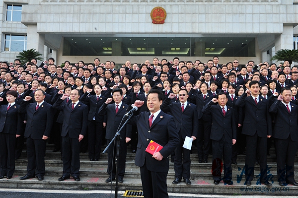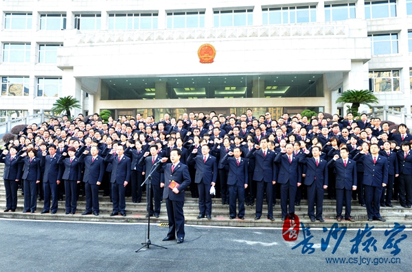 图2:早上9:00,市检察院党组书记、检察长陈绍纯领誓