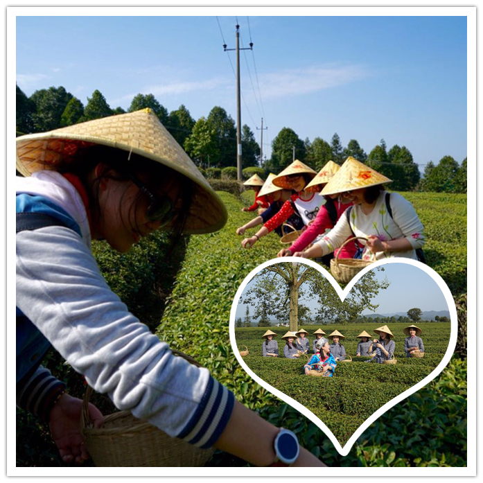 激烈运动后的女干警们丝毫没有懈怠,擦干汗水,撸起袖子,戴起斗笠,挎起竹篮,移步金井茶园,感受茶香文化,体验采茶风情。活动的主办方贴心的为各位女干警们准备了农家衣裳。换上新装的检花们在采茶劳动中争相绽放,温柔婉约,别具风情。