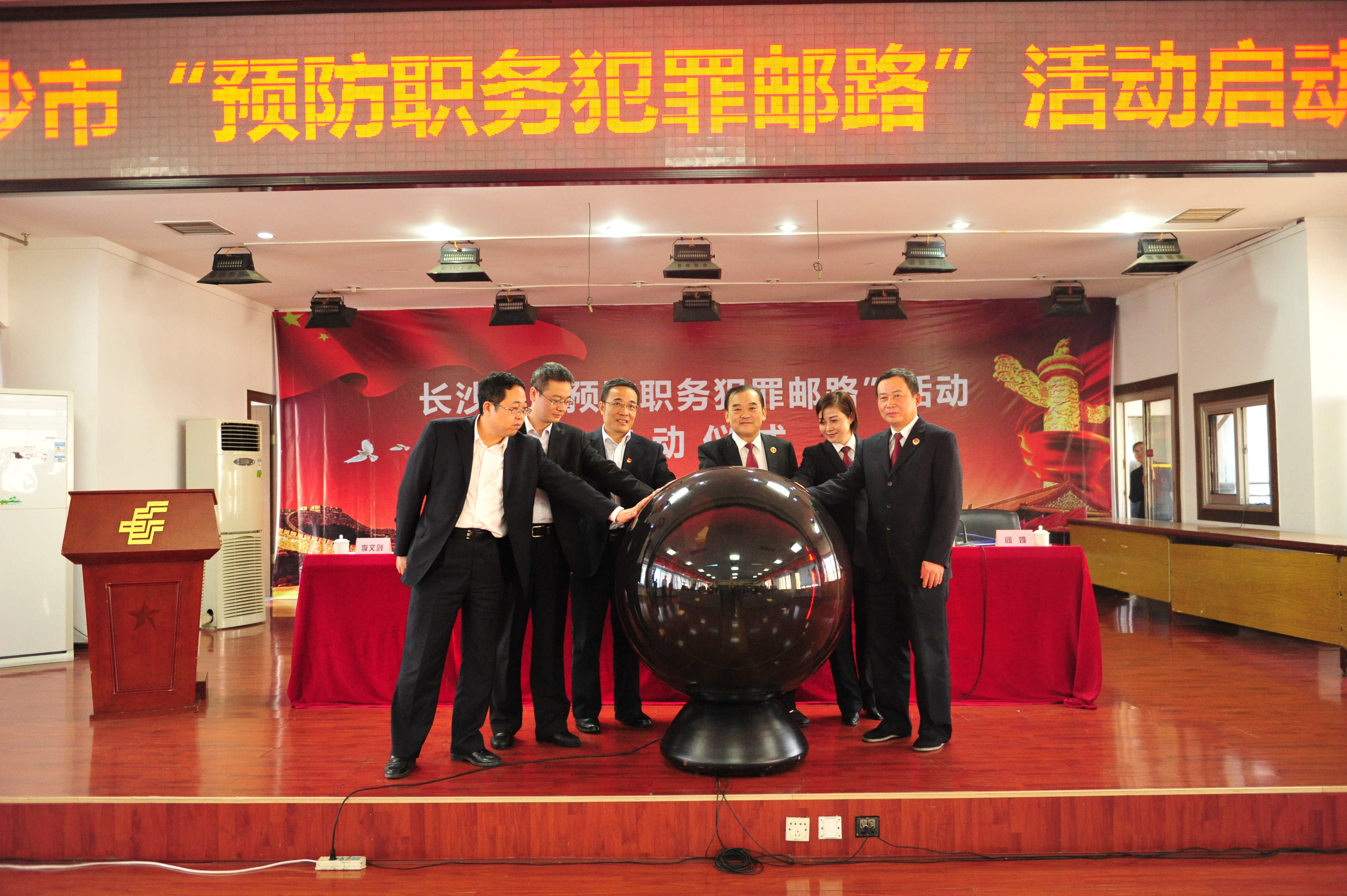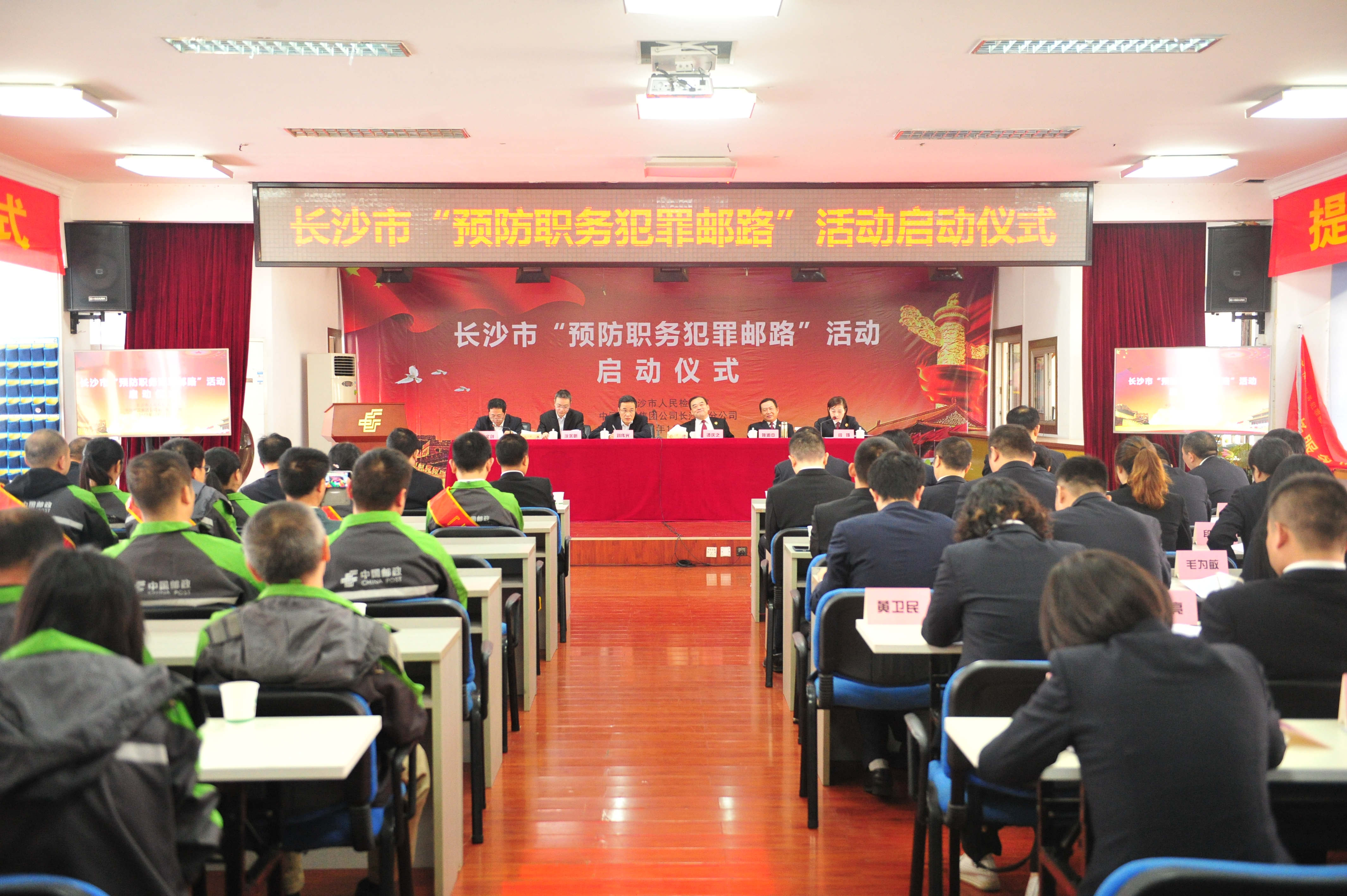 和中国邮政公司长沙分公司在市邮政分公司召开会议,正式启动了长沙市“预防职务犯罪邮路”专项工作。省院职务犯罪预防处处长谭庆之、市院党组副书记、副检察长姚湘中、市院职务犯罪预防处处长阎媚等相关内设机构负责人,各区、县(市)院分管副检察长、职务犯罪预防科科长,以及省、市、区(县、市)三级邮政分公司相关领导、分管副总经理、“预防邮路”志愿服务队部分代表约百余人参加了活动的启动仪式。启动仪式由市邮政分公司副总经理李文剑主持。