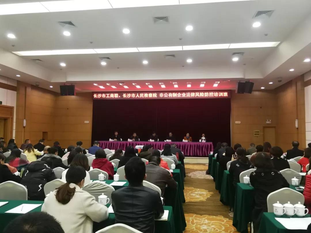 11月21日,人人体育直播 联合长沙市工商联共同举办“非公有制企业法律风险管理培训班”。市政协副主席、市工商联主席彭继球出席开班仪式并讲话。人人体育直播 副检察长张青春为培训班开讲“第一课”。长沙市工商联(总商会)企业家副主席(副会长)代表、各区、县(市)工商联分管领导、市工商联直属商会负责人及企业代表共计150人参加培训。