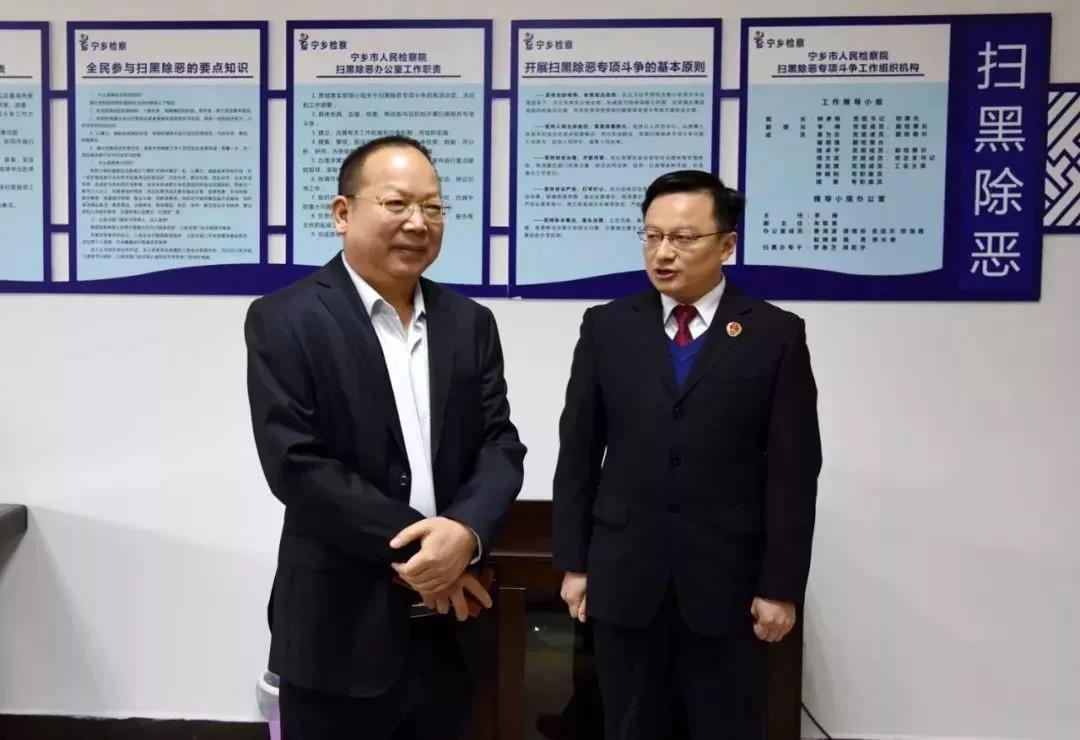王勋爵检察长一行到宁乡市人民检察院督导扫黑除恶专项斗争工作。长沙市纪委监委驻市检察院纪检监察组组长、市检察院党组成员李勇,副检察长张青春,宁乡市市委常委、政法委书记刘俊武陪同督导。