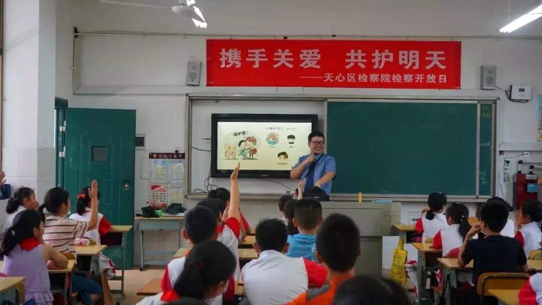 5月28日,天心区检察院邀请人大代表、政协委员们走进天心区井岗小学五年级的课堂,检察官为孩子们送上一堂《如何保护人身权利》的法治课,通过“放学时遇到敲诈勒索时该如何做”的情景模拟和各种贴近生活的小问题进行讲解。现场孩子们积极参与互动,课堂气氛活跃,效果良好。
