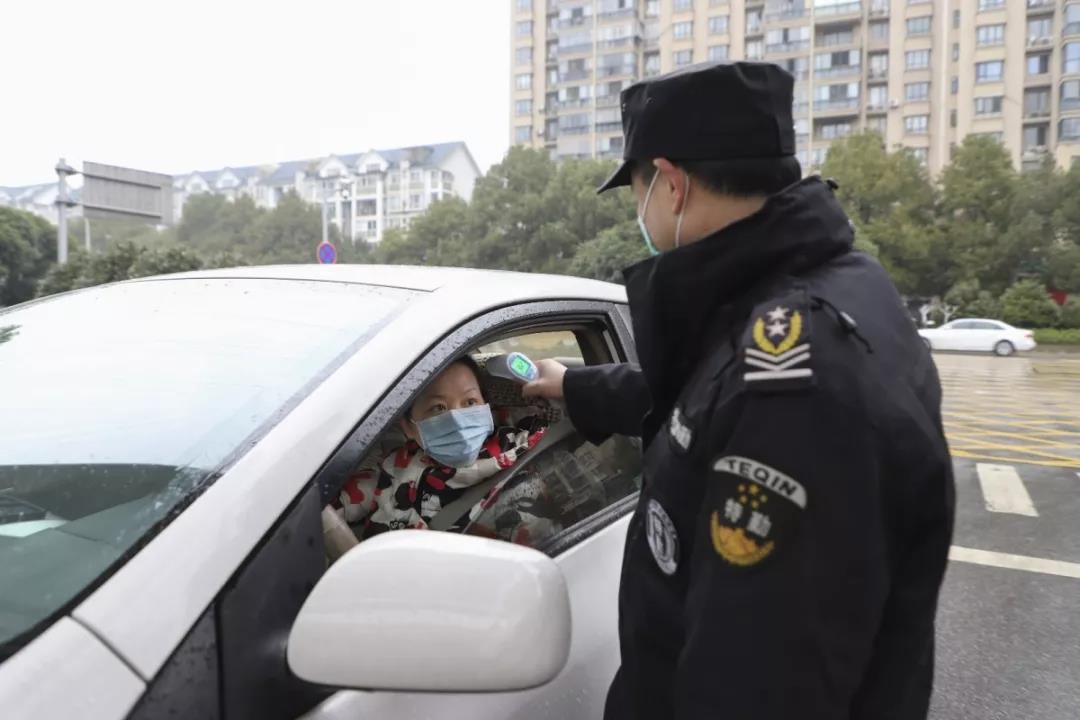 车辆人员进门岗接受测温,