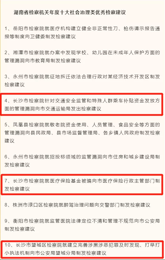 1月19日,湖南省检察院召开新闻发布会,发布全省检察机关年度10大社会治理类优秀检察建议,其中,nba直播人人 机关发出的检察建议占了3席。