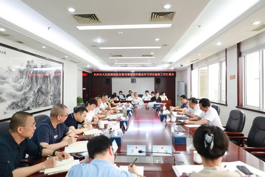 6月16日,长沙市检察院召开政法队伍教育整顿查纠整改阶段评估验收工作汇报会,湖南省政法队伍教育整顿省级驻点第一指导组检察院现场指导专班负责人颜赤亚一行出席指导。市检察院党组书记、检察长王勋爵出席会议并讲话。