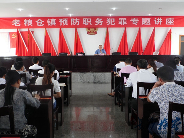 2015年6月17日上午,宁乡县检察院副检察长易为志为老粮仓镇乡、村两级干部、驻镇部门负责人200多人,作了题为《建设美丽乡村,远离职务犯罪》的预防警示教育宣传讲座。易检在讲课中,以2013年以来宁乡查办的一些职务犯罪案例为切入点,结合宁乡县实际,从农村职务犯罪的严峻形势,对社会、家庭、个人的危害,几种高发案例罪名的量刑标准以及农村职务犯罪的原因进行了深入阐述,并针对不同的现象提出了预防职务犯罪的对策和建议。