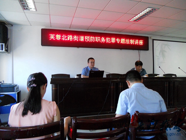 2015年8月4日下午,应开福区芙蓉北路街道检察联络室之邀,长沙市开福区检察院党组成员、副检察长刘立在该街道五楼会议室,给六十余名街道干部上了一堂题为《远离职务犯罪,携手共建廉政》的职务犯罪预防课。