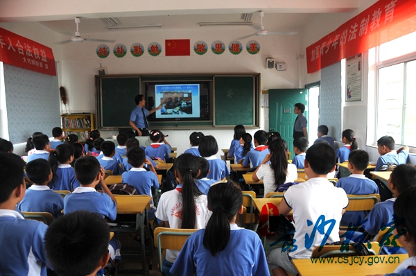 为贯彻落实《检察机关加强未成年人司法保护八项措施》,积极进行犯罪预防和普法宣传工作,提高未成年人的法律意识,天心区检察院专职委员焦焰多次联系天心区大托铺街道办事处,表示希望能在当地小学开展一次“法治课堂进校园”活动。2015年9月11日,天心区检察院将一堂生动的以“珍爱生命,远离毒品”为主题的法治课带进了天心区兴隆村兴隆小学。