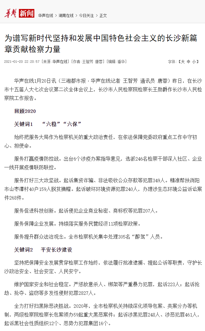 湖南省长沙市检察机关坚持以创新驱动检察工作新发展,聚焦主责主业,深化、细化、实化检察服务职能,积极探索创新工作机制,推动检察监督的专业化、规范化建设——撑起知识产权“保护伞”、服务非公企业的先锋、向校园暴力说“不”、“私人定制”计划、守护舌尖上的安全、惩治危害食品药品安全犯罪、到派出所坐班……