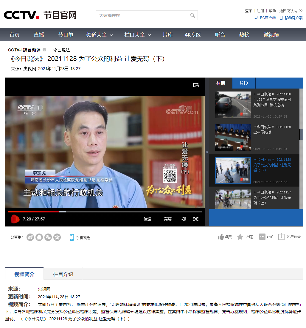 11月28日,中央电视台《今日说法》专题片《为了公众的利益》之《让爱无碍》深度报道了nba直播人人