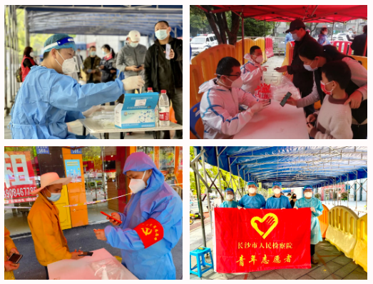 在清明节假期中,宁乡市检察院志愿服务团队派出2名志愿者参与宁乡市第5、第6轮核酸检测工作,与广大抗疫人员并肩作战,用检察守护“宁”。