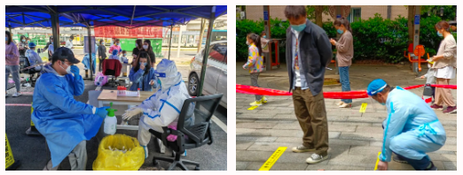 4月4日接到协助开展全员核酸检测通知后,志愿服务队员火速投入备战状态。4月5日早上7点,10名志愿者返院集结并迅速下沉到东方新城社区、荷晏社区、德政园社区,协助社区工作人员、医务人员进行现场布置、秩序维护、体温测量、一米间隔引导、扫码登记等工作。