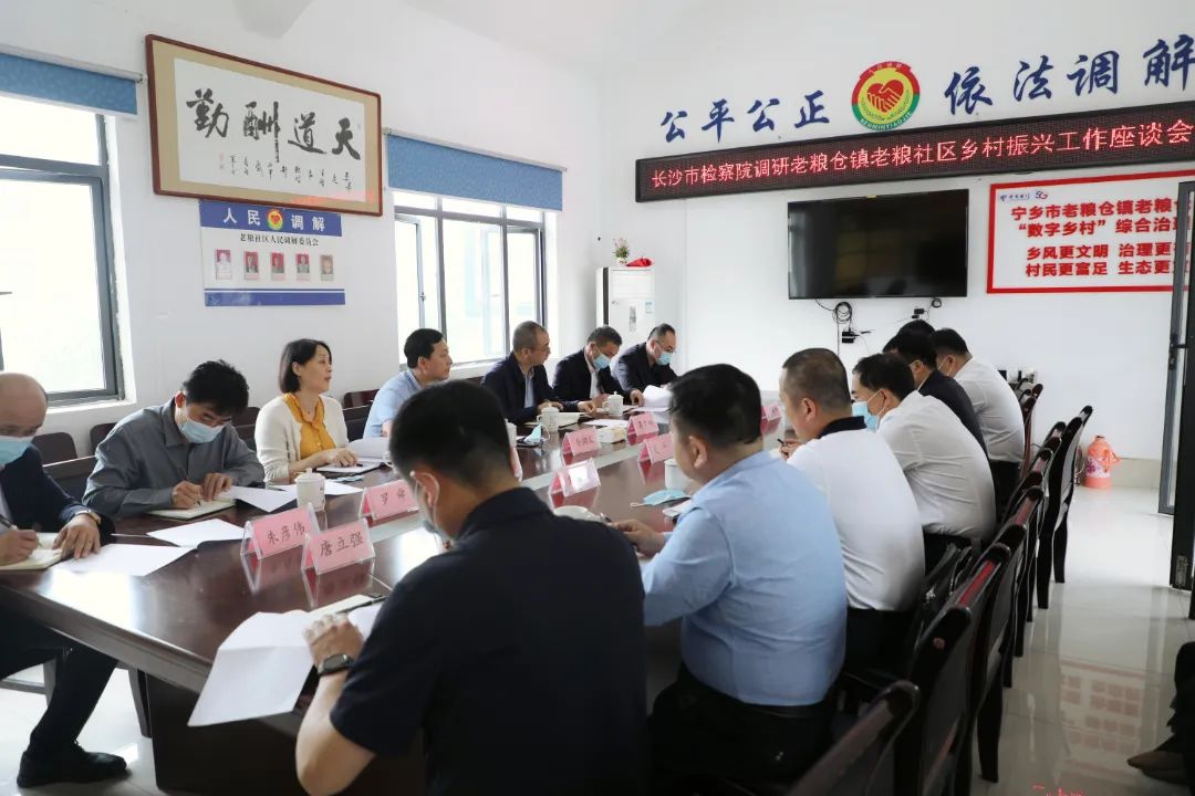 5月18日,长沙市检察院党组书记、检察长余湘文率队到市检察院乡村振兴驻村帮扶点宁乡市老粮仓镇老粮社区走访调研。市检察院党组成员、政治部主任周幸福参加调研并主持座谈会,宁乡市委常委、政法委书记文平,宁乡市检察院党组书记、检察长刘文广,老粮仓镇党委书记潘杰等陪同调研。
