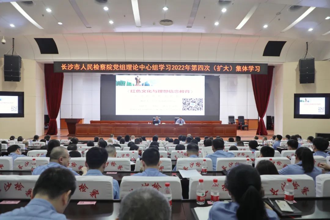 6月10日上午,长沙市检察院举行党组理论学习中心组第四次集体(扩大)学习,邀请了湘潭大学党委委员、副校长刘建平教授作了题为《红色文化与理想信念教育》的专题辅导,市检察院党组书记、检察长余湘文主持。