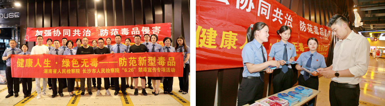 在第35个国际禁毒日到来之际,为进一步推进全民禁毒宣传教育,深度参与社会综合治理,根据湖南省检察机关开展“新型毒品防范”禁毒专项活动要求,6月23日,湖南省检察院、长沙市检察院联合长沙市公安局禁毒支队、长沙市公安局天心分局禁毒大队,面向酒吧娱乐行业从业人员,开展“6.26”禁毒宣传专项活动。
