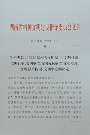 近日,湖南省精神文明建设指导委员会印发《关于表彰2022届湖南省文明城市、文明村镇、文明行业、文明单位、文明标兵单位、文明校园、文明标兵校园、文明家庭的决定》(湘文明委〔2023〕1号),长沙市检察院金榜题名,荣获2022届“湖南省文明标兵单位”称号。