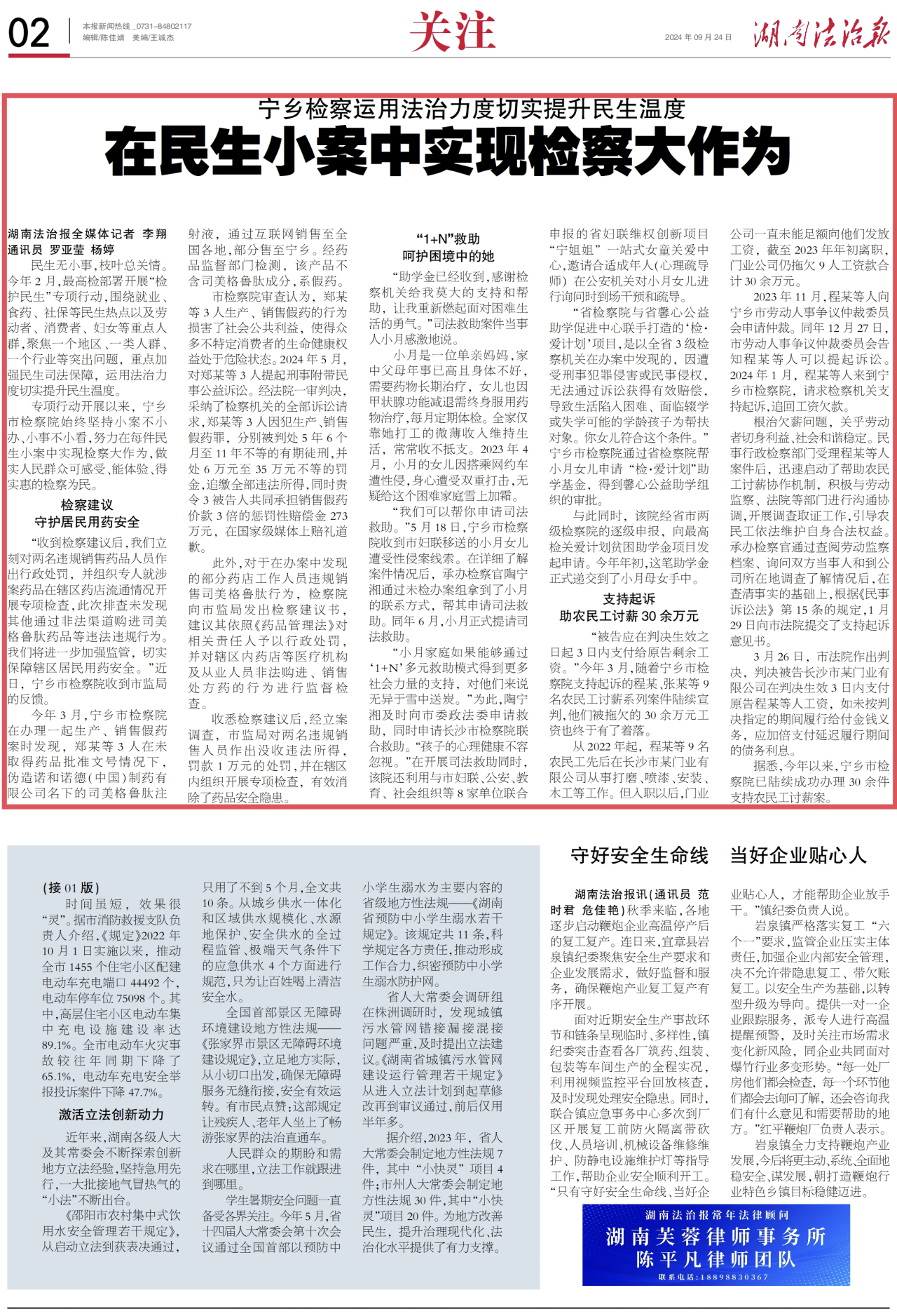 专项行动开展以来,宁乡市检察院始终坚持小案不小办,小事不小看。努力在每件民生小案中实现检察大作为,做实人民群众可感受、能体验、得实惠的检察为民。