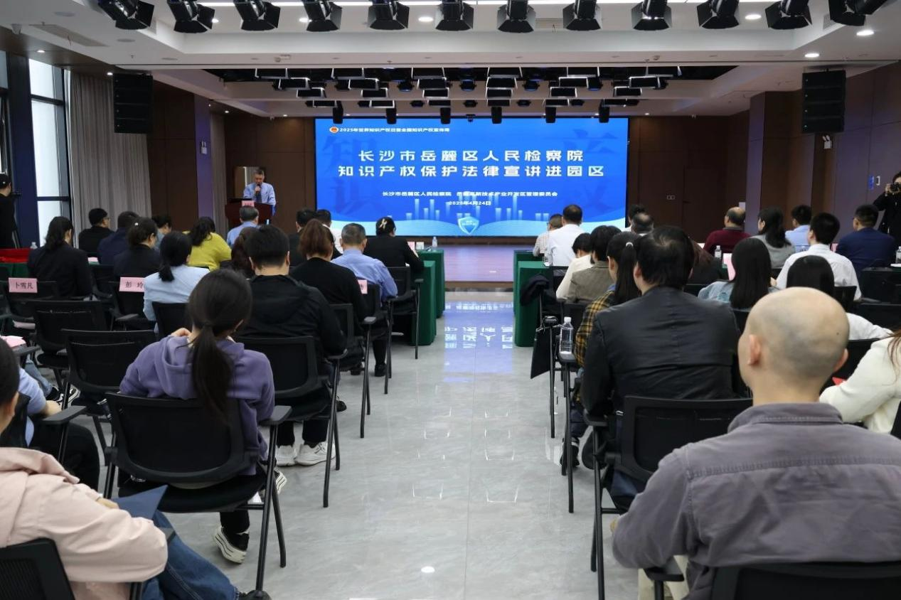 4月24日,全国知识产权宣传周期间,长沙市岳麓区人民检察院和岳麓高新技术产业开发区管委会共同开展“协同保护知识产权 依法助力创新发展”法律宣讲进园区主题活动。人人体育直播 、长沙知识产权保护中心、湘江新区政法工作部等单位代表,以及部分知识产权领域专家、企业代表等近百人参加活动。