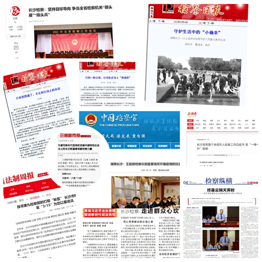 近年来,长沙市检察机关坚持检察工作为本、检察文化为要、新闻宣传为效“三位一体”宣传工作理念,紧紧围绕检察中心工作,充分借助《检察日报》等主流媒体平台,融合多种方式,纵深推进法治宣传工作。推出了一批高质量的新闻作品,先后开设人人体育直播 匠心、人人体育直播 “1”分钟、身边的榜样、检察为民办实事等系列专栏,立足检察工作新实践,讲述检察好故事,传播法治正能量,取得了较好的宣传效果,受到广泛好评。今年以来,全市检察机关在市级及以上媒体发表稿件两千余篇,其中多个普法小视频、为民办实事报道得到中央、省、市级媒体的大力推介。