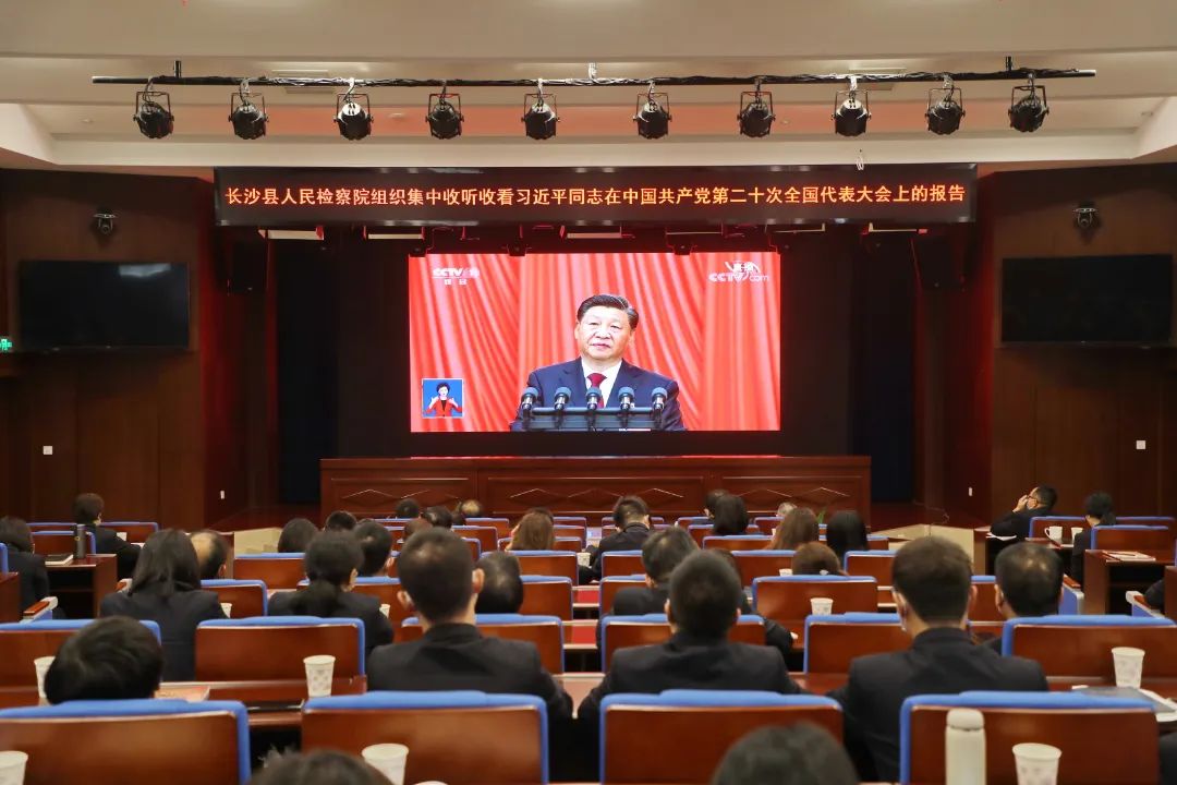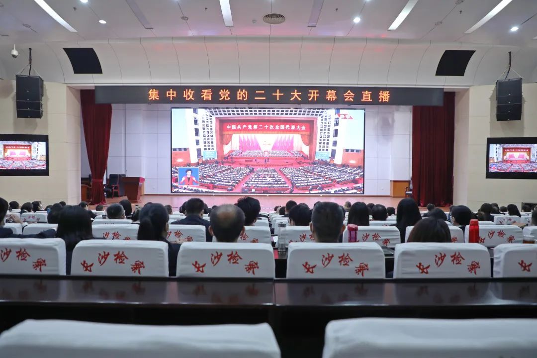 岳麓区检察院领导班子和各内设机构正、副职集中观看中国共产党第二十次全国代表大会开幕盛况,大家倍受鼓舞,倍感振奋,表示将积极弘扬伟大建党精神,以更高站位、更高标准、更高要求,把各项检察工作落到实处、做到极致,自信自强、守正创新,踔厉奋发、勇毅前行,为全面建成社会主义现代化强国、实现第二个百年奋斗目标提供法治保障、作出检察贡献。