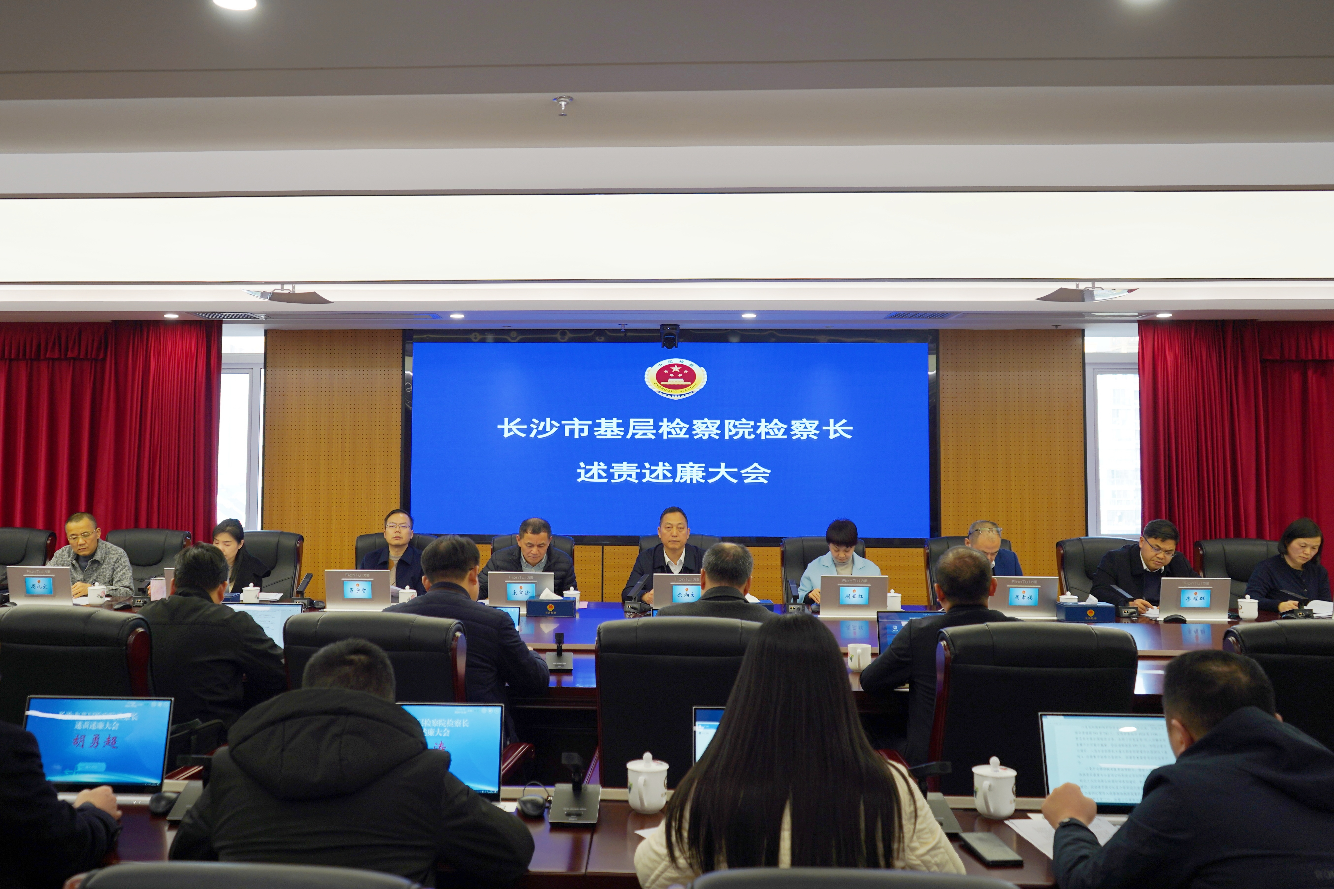为落实党中央、省委和上级检察机关关于加强对“一把手”和领导班子监督的要求,检验各基层检察院尤其是主要负责人担责履职的情况,12月25日,长沙市检察院召开党组扩大会听取基层检察院检察长述责述廉情况。会议由市检察院党组书记、检察长余湘文主持。市检察院班子成员、检察委员会专职委员,内设机构负责人参加会议。