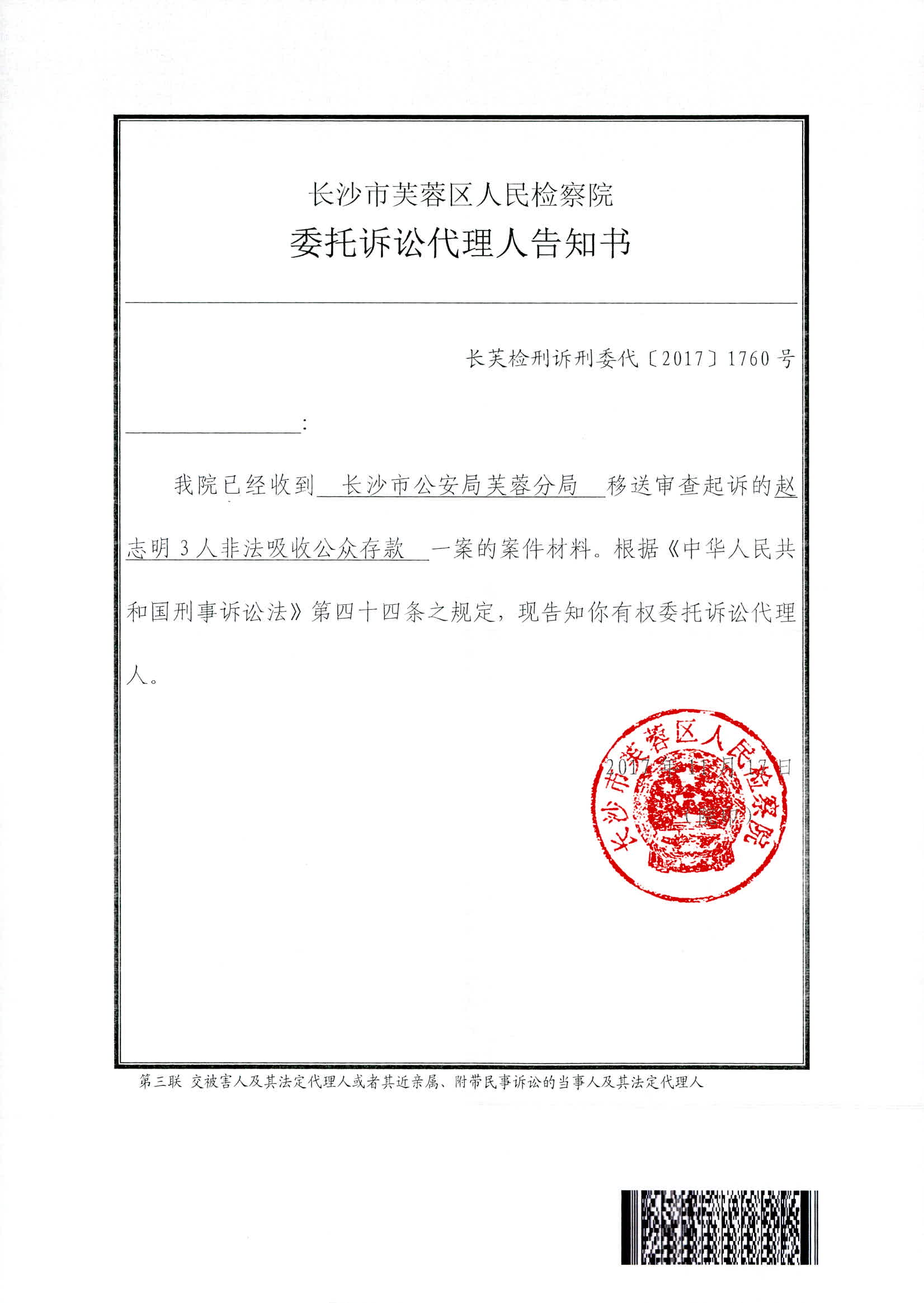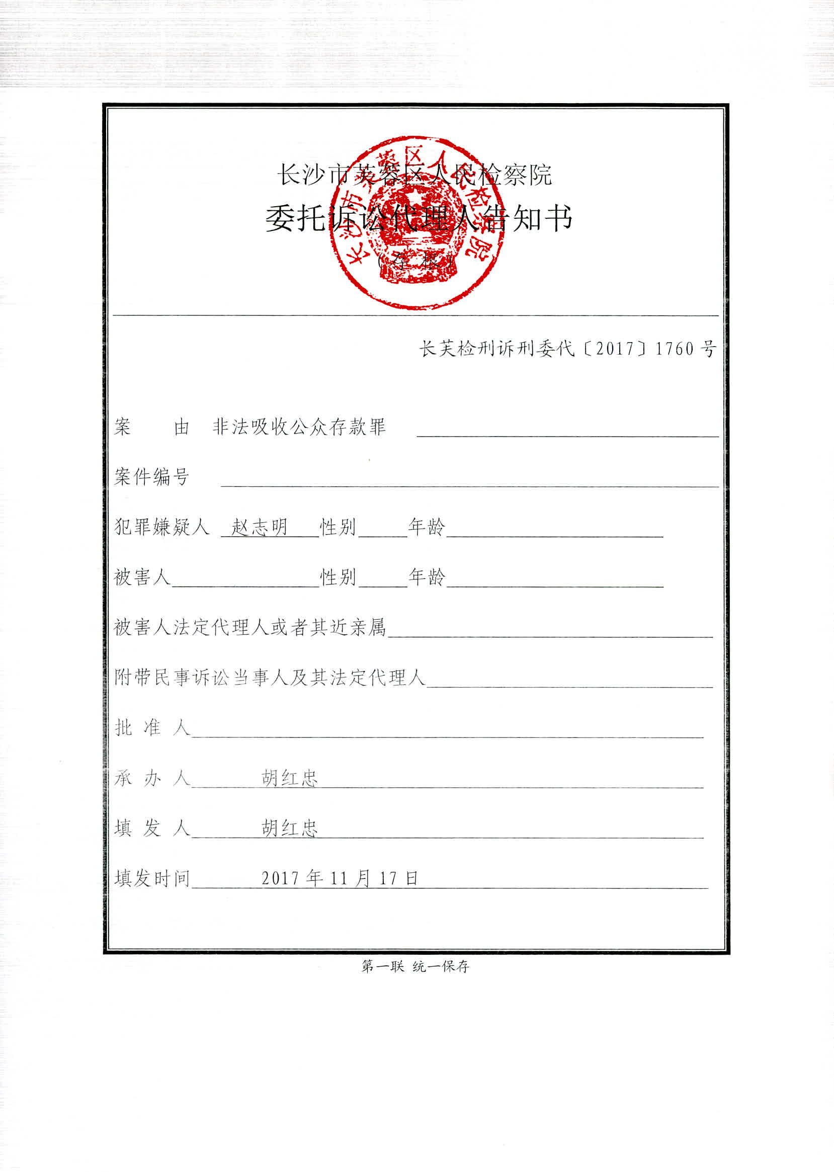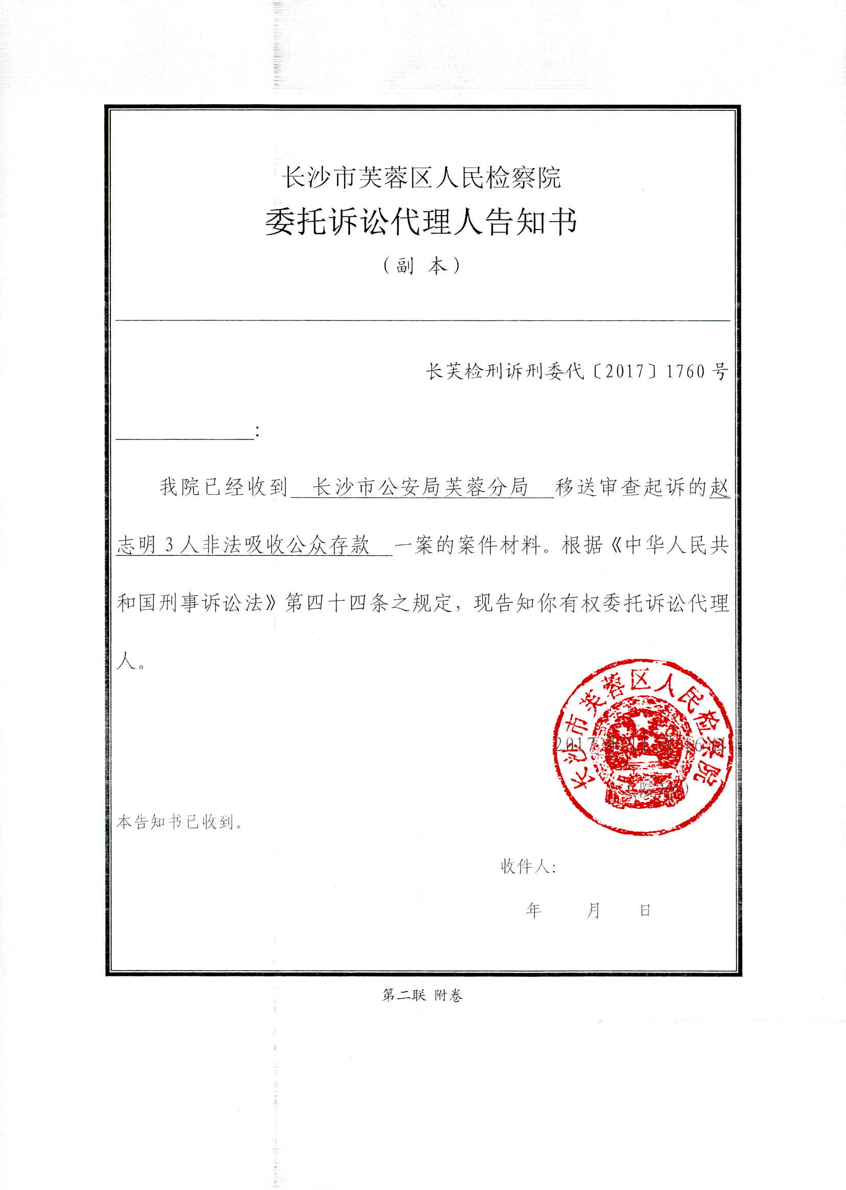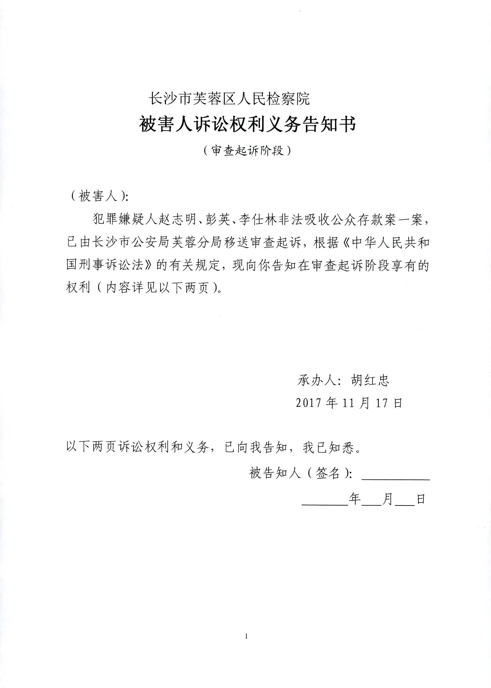 赵志明等人涉嫌非法吸收公众存款案权利义务告知书