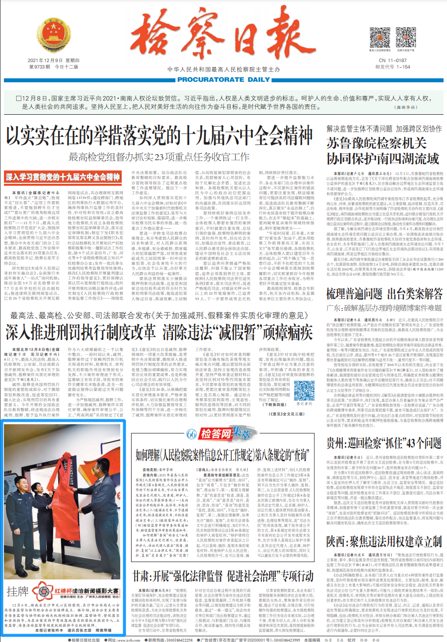 ∆ 2021年12月9日《检察日报》第01版:要闻