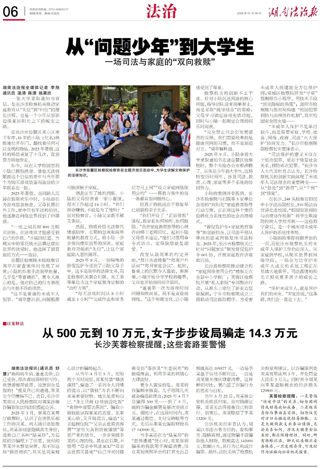 在长沙,248名检察官担任中小学法治副校长,510场法治宣讲走进校园,“校园犯罪预防与治理协作机制”将学生欺凌防控纳入学校考核……这些数字背后,是一个城市对未成年人保护的系统性布局。