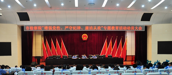 市检察院党组书记、检察长陈绍纯在会上讲话。陈绍纯指出,市检察院专题教育活动的实施方案是按照中央政法委、最高人民检察院和省检察院的要求制定的。实施方案对于全市检察机关专项教育活动的开展作了全面安排,提出了明确要求。彭志敏同志的动员报告是经院党组研究决定的,大家要认真贯彻落实。稍后还将召开全市基层检察院开展专项教育活动会议。对于如何认真开展好本次专项教育活动,陈绍纯提出了三点要求。第一,一定要端正思想认识。对于开展此专项教育活动,有些同志的思想认识可能有些模糊。认为群众路线教育活动还没有结束,又要开展这个专项教育活动,可能有厌烦、消极、应付的情绪和思想。这个糊涂思想认识一定要消除。这次开展的专项教育活动是中央政法委、最高人民检察院根据反腐倡廉的有关要求进行部署的。目前,全国政法系统的违法案件接连不断发生,给全国政法系统和政法干警敲了警钟。如何从中吸取教训,如何打造一支让人民满意、让党放心的政法队伍,是摆在我们政法机关包括检察机关面前的一项重大而紧迫的任务。今天动员大会以后,大家一定要把思想和行动统一到市院党组的部署和要求上来,自觉投入到本次专项教育活动中去。第二,一定要突出重点。增强党性是本次专项教育活动的核心。全体检察人员在思想上、政治上和行动上一定要与党中央保持高度一致,坚决执行、维护党中央的决定;坚决服从党、全心全意为党服务;要有坚定的政治定力,不能消极应付,不能变形走样。严守纪律是保障。政法队伍是一支铁军,没有严明的纪律,就会成为一盘散沙。要严明并自觉地执行政治纪律、组织纪律、工作纪律和生活纪律,打造纪律严明之师。要严格查找自己的行为有没有违反省检察院纪检组编印的《检察人员纪律手册》及《党员领导干部廉洁从政若干准则》等各项纪律和规定。廉洁从政是基本要求。要防范违法违纪问题和案件的发生,就必须廉洁从检,否则,政法干警违法违纪时有发生、甚至屡见不鲜,必将严重影响司法检察公信力。同时,作风飘浮、缺乏担当、素质提升不快、甘于平庸、落后等等,这都与此项活动要求是格格不入的,都要加以克服、纠正和整改。第三,一定要取得实效。为此,本次专项教育活动一定要做到六个结合。一是要坚持与学习习近平总书记系列重要讲话精神结合起来。二是要坚持与善始善终、深入开展好党的群众路线教育实践活动结合起来。党的群众路线教育实践活动已经到了整章立制、整改落实阶段。目前各党支部的整改方案及清单还需要修改完善。整改方案及清单要回应全部存在的问题特别是“四风”等问题;要有定性、定量目标与要求;要有可操作性;要狠抓落实,早见实效。三是要坚持与检察机关正在开展的“坚守职业良知,践行执法为民”大学习大讨论活动结合起来。四是要坚持与深化检察改革结合起来。五是要坚持与创建文明单位、维护队伍形象结合起来。六是要坚持与促进检察业务工作结合起来。真正实现“两手抓”、“两促进”、“两不误”。