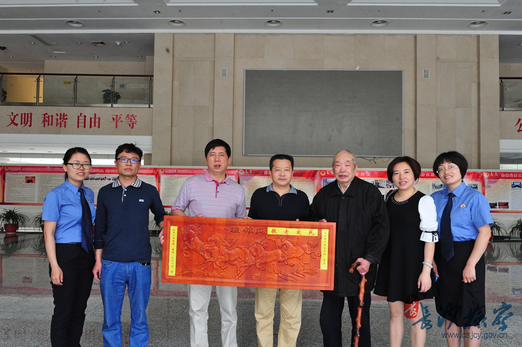 谭国雄老人激动的表示,“你们是我的亲人!我知道,社区工作忙、检察院工作更忙。感谢陈检、感谢检察院一直以来对我、对我们老百姓的关心!一直无以为报,这次恰好得一木制的徐悲鸿八骏图牌匾就送过来了;我认为八骏图象征着检察事业,希望检察院、检察事业永远如八骏图中的八匹马一样充满活力、朝气。”
