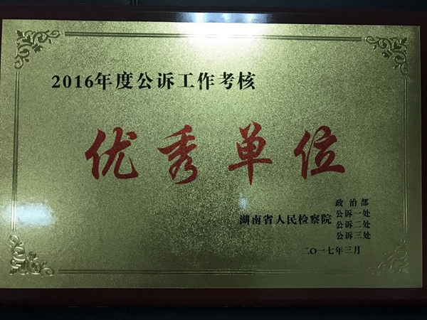 2016年3月2日至3日,湖南省检察机关公诉工作暨未成年人刑事检察工作会议、职务犯罪公诉工作专题会议在岳阳召开。会上通报表彰了2016年度全省公诉工作考核优秀单位以及优秀公诉案件、优秀公诉庭。