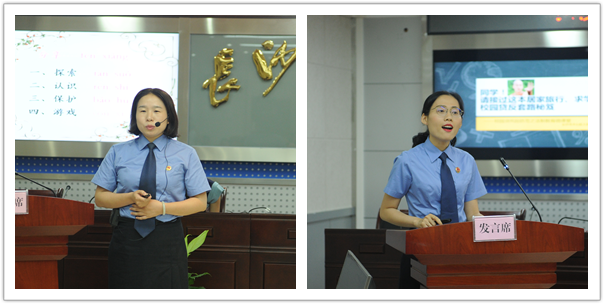 巡讲团的女检察官们试讲结束后,湖南省人民检察院干部教育培训处副处长郭海鹰,湖南省人民检察院未成年人刑事检察办公室副主任梁驭骁,湖南商学院法学院教授、法学博士、原长沙市检察院检察长助理曾荇,湖南大学副教授、湖南省演讲学会理事茹娜分别进行了点评及指导。