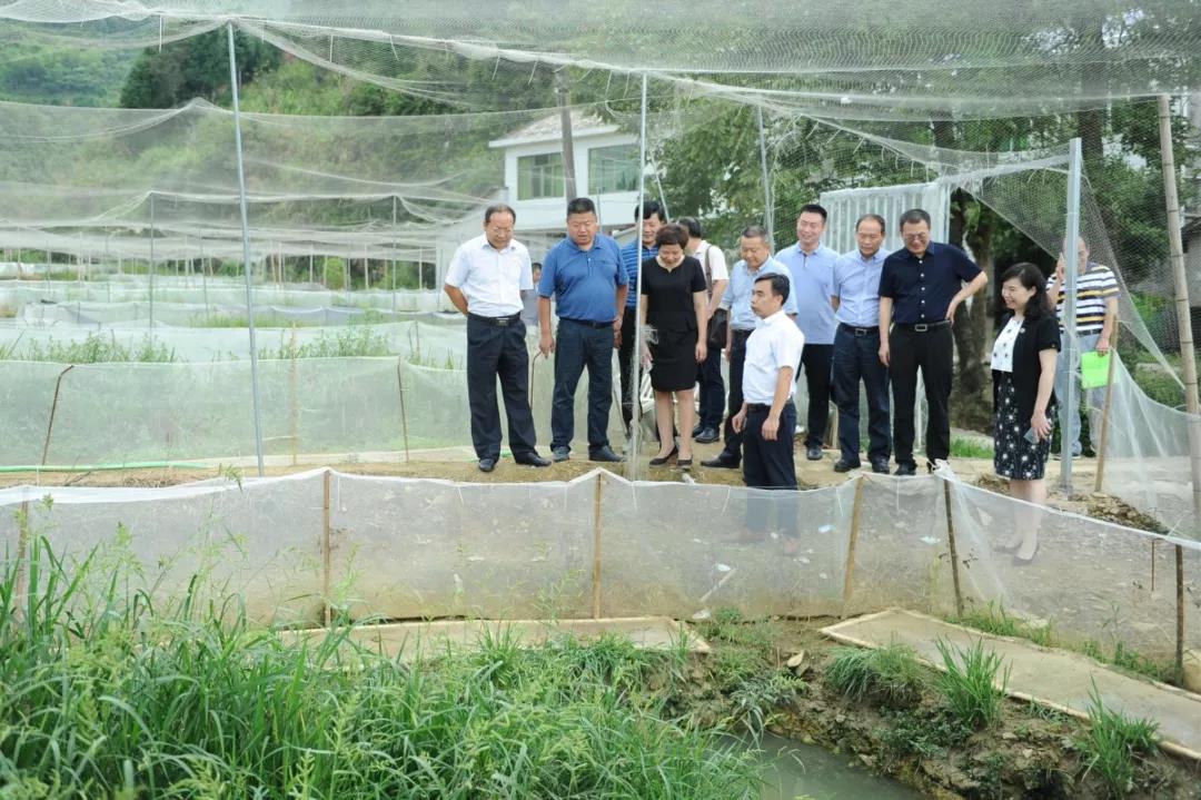当前正是黑斑蛙收获季节,上门收购的水产商络绎不绝。黑斑蛙养殖是按照中和镇“一村一品”产业思路发展起来的,采取“合作社+基地+农户”经营管理模式,集中流转贫困户闲置土地,吸收贫困户利用扶持资金投资入股,吸纳贫困人口务工就业,带动贫困群众增收致富。王勋爵检察长一行首先来到黑斑蛙养殖基地,他详细询问了黑斑蛙生长周期、每亩产值,销售渠道,贫困户受益情况等等,村土地合作社负责人一一作答。