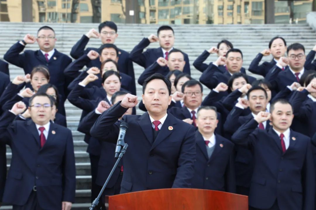 宣誓仪式在雄壮的国歌声中拉开帷幕,全体宣誓人员精神抖擞,在领誓人的带领下,面对国旗庄严宣誓,表达了全体检察人员忠于宪法、牢记誓言、奋发进取的决心和担当。