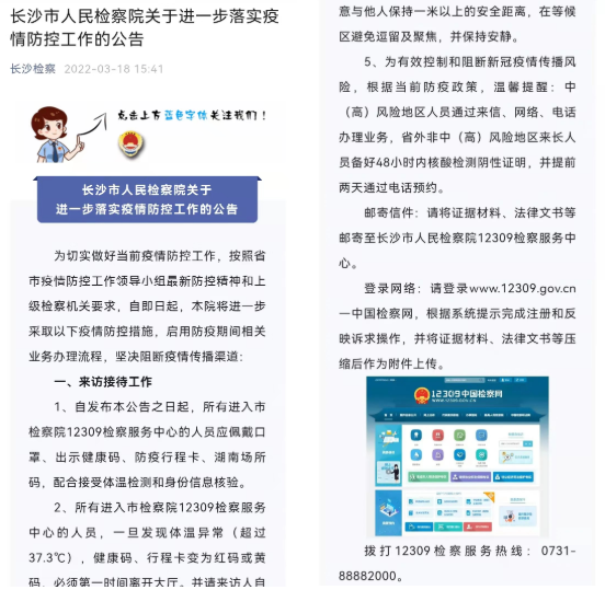 机关通过微信公众号等渠道发布《关于进一步落实疫情防控工作的公告》,提示群众到访办理业务的流程规定。对于不便到访的群众,建议通过邮寄信件、登录12309中国检察网或下载“检察12309”APP等多种方式与该院联系。