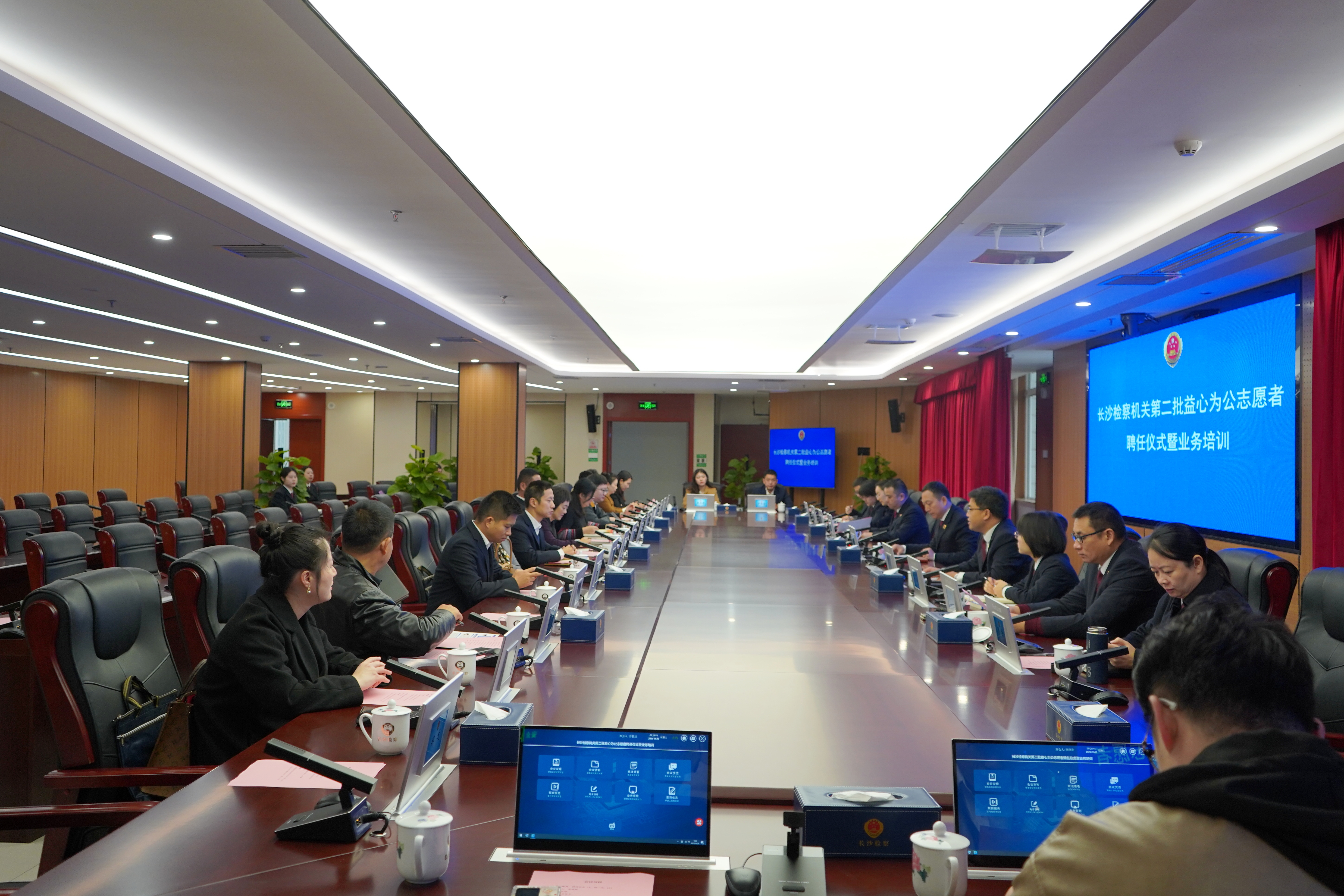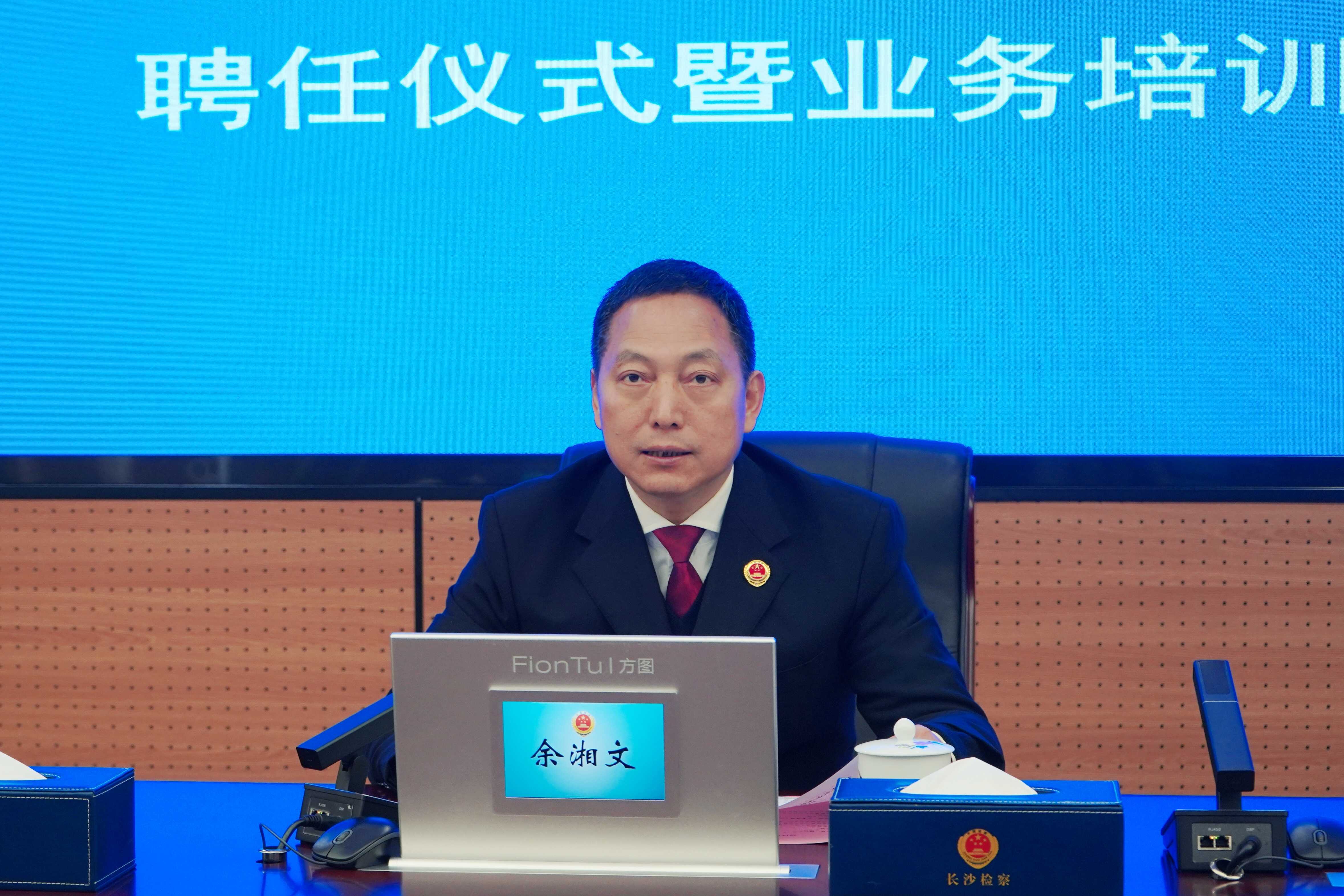 11月20日,长沙市检察机关举行第二批益心为公志愿者聘任仪式暨业务培训。会议由市检察院副检察长廖耀群主持,市检察院党组书记、检察长余湘文出席会议并讲话。全国人大代表戴茵和湖南大学岳麓书院博士曲新楠作为志愿者代表进行了表态发言。本次会议以视频会议形式开至全市两级检察院。