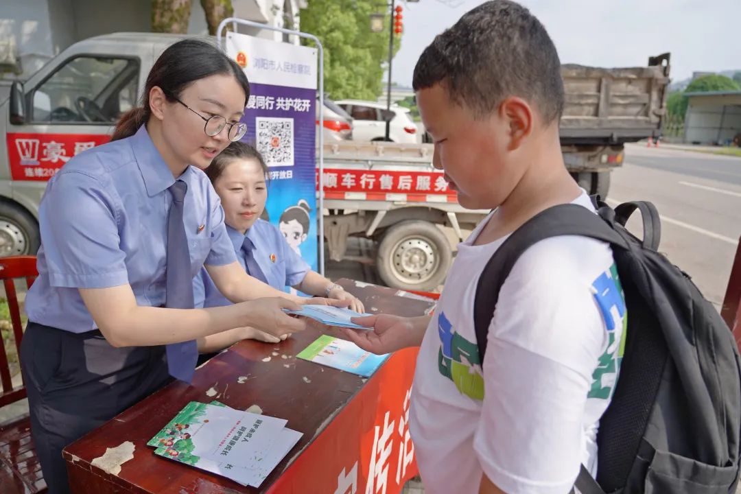 岳麓区检察院“岳检护苗”团队联合教育、公安、烟草等部门来到雨敞坪镇、莲花镇等城郊地区,开展多场“检爱同行 共护花开”未成年人保护普法活动,关注留守儿童权益保护,送上特色普法大礼包,护航孩子们的美好“未”来。