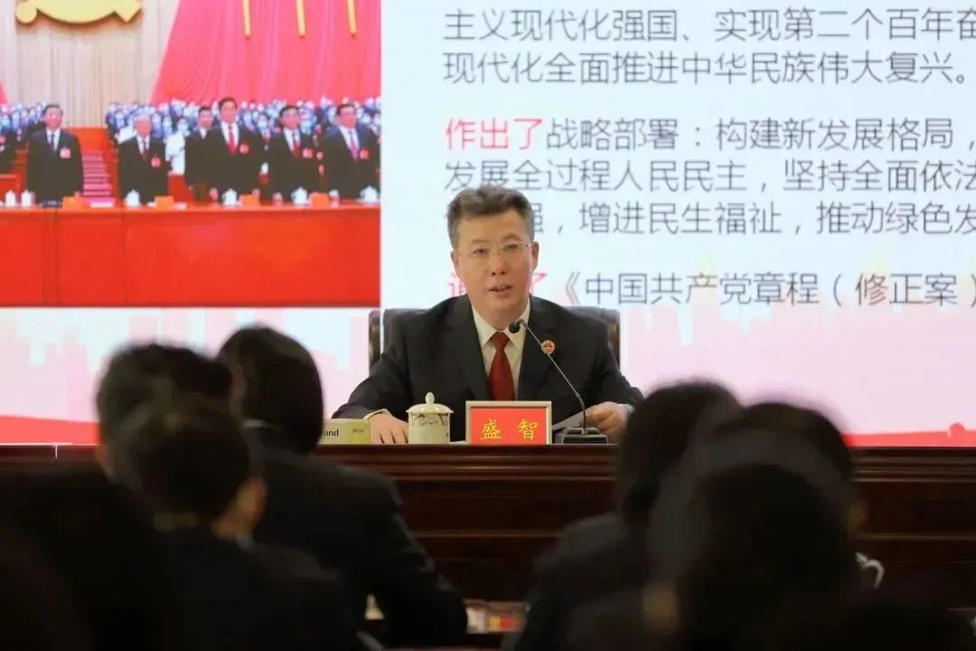 盛智结合自身学习感悟,从“坚持深学细悟,准确把握党的二十大精神实质和丰富内涵;坚持提纲挈领,深刻领悟切实担负起党和人民赋予检察机关的更重责任;坚持笃行实干,不折不扣地将各项决策部署落实到具体检察工作中”三个方面对党的二十大精神进行了深刻阐释和深入解读,对贯彻落实具体举措进行了安排部署。